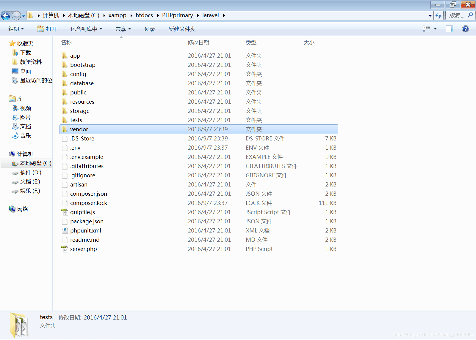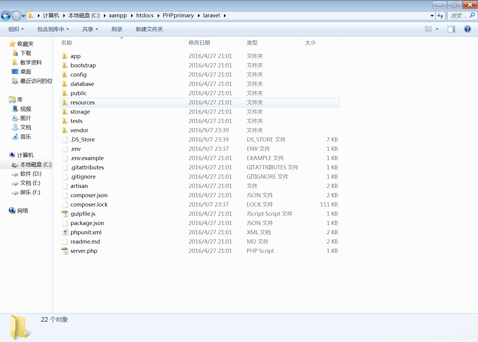 這個是為了幫助你們理解以后在運用Laravel框架時候代碼如何存放,然后說明一點,我這是5.2版本的Laravel。