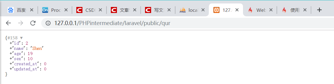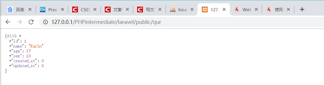 為了和上面的區(qū)分一下,我把print_r換成了var_dump,他會(huì)輸出成一個(gè)true,證明新增成功了。