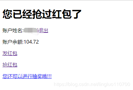 搶紅包成功之后,用戶余額會加上搶到的金額