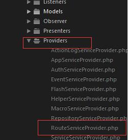 3、打開app/Providers/RouteServiceProvider.php 定義各個(gè)功能對(duì)應(yīng)的路由文件