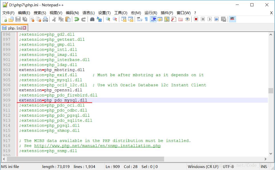 原因是php.ini 擴(kuò)展"php_pdo_mysql.dll"沒開啟