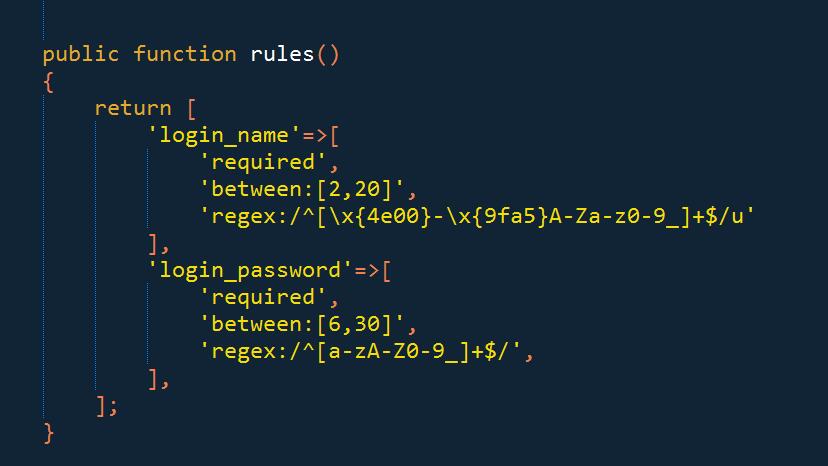 巨人網(wǎng)絡(luò)通訊聲明:本文標(biāo)題《基于Laravel 5.2 regex驗(yàn)證的正確寫法》,本文關(guān)鍵詞 基于,Laravel,5.2,regex,驗(yàn)證,;如發(fā)現(xiàn)本文內(nèi)容存在版權(quán)問題,煩請?zhí)峁┫嚓P(guān)信息告之我們,我們將及時溝通與處理。本站內(nèi)容系統(tǒng)采集于網(wǎng)絡(luò),涉及言論、版權(quán)與本站無關(guān)。