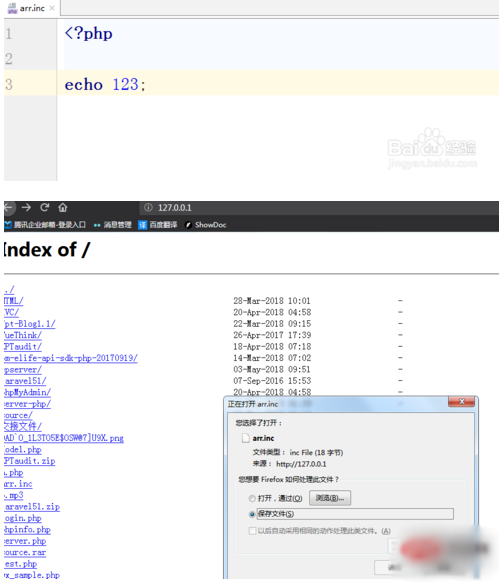 我們在建立一個文件。這個文件的后綴為.inc。然后呢,運(yùn)行這個文件,看是否可以運(yùn)行。這個時候,我們會發(fā)現(xiàn)一個問題。運(yùn)行的時候出現(xiàn)一個下載框。