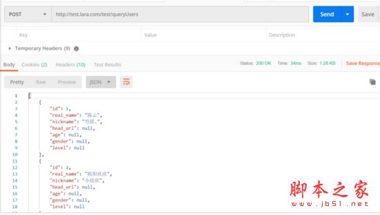 'http://test.lara.com/test/queryUsers',