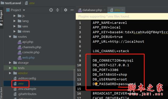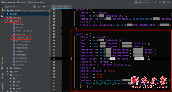 查看 database.php 文件的mysql配置我們能夠看到配置值是 變量 , 指向的是項(xiàng)目根目錄的 .env 文件