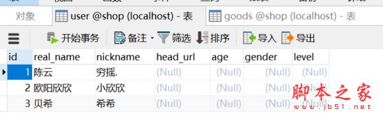 這行代碼表示返回goods表中的 所有字段 以及user表中的 real_name 和 head_url 字段, 就完美達(dá)到了我們想要的結(jié)果.