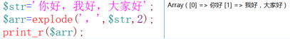 語法: explode(string,$str[,num])