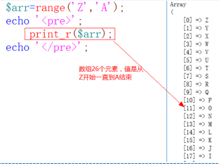 如果range里面的參數(shù)是數(shù)字,那么他直接按照數(shù)字大小的順序排序,如果里面的參數(shù)是一個字符,那么他將按照ascii編碼的順序排序。