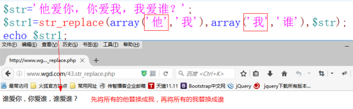 語法 :str_replace(替換前字符,替換后的字符,$str)