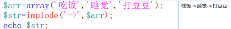 語法 : implode(string,$arr)