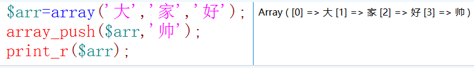語法:array_push($arr,$value[,$value2..$valuen])