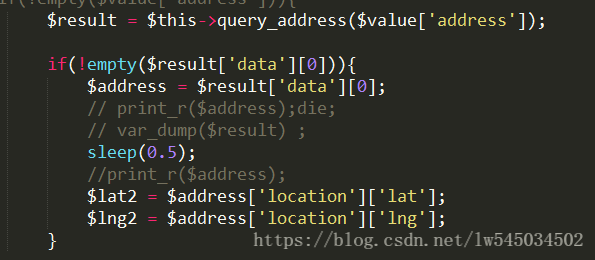 $result[‘lat‘] = $data[‘result‘][‘location‘][‘lat‘];
