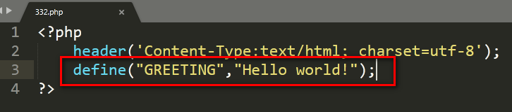 define("GREETING","Hello world!");