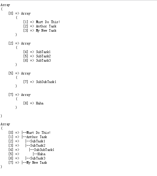 //組成數(shù)組(一級(jí)鍵為parent_id,二級(jí)鍵為task_id,值為任務(wù)內(nèi)容)
