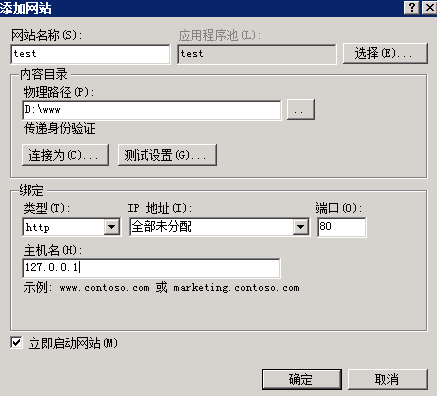 網(wǎng)站名稱隨便起,物理路徑即表示你的根路徑,我在D盤建立個www文件夾作為根目錄