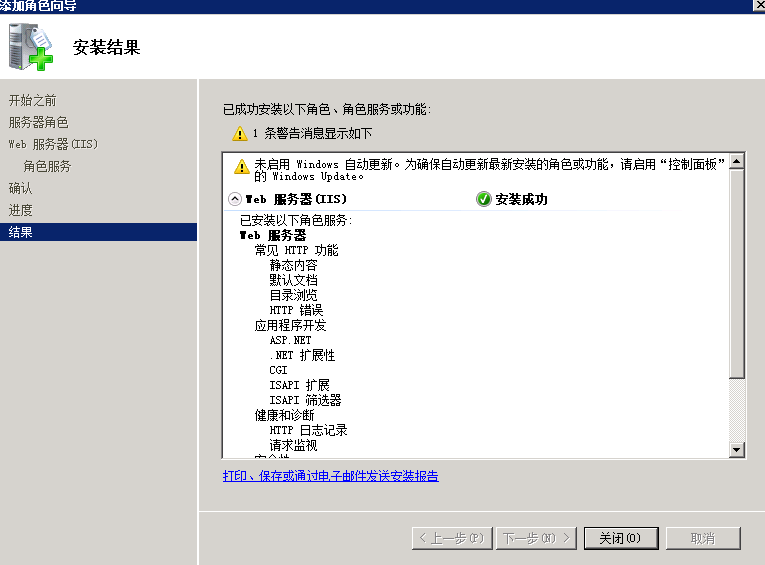 此時已安裝成功,關(guān)閉即可,打開IIS管理器,如下圖