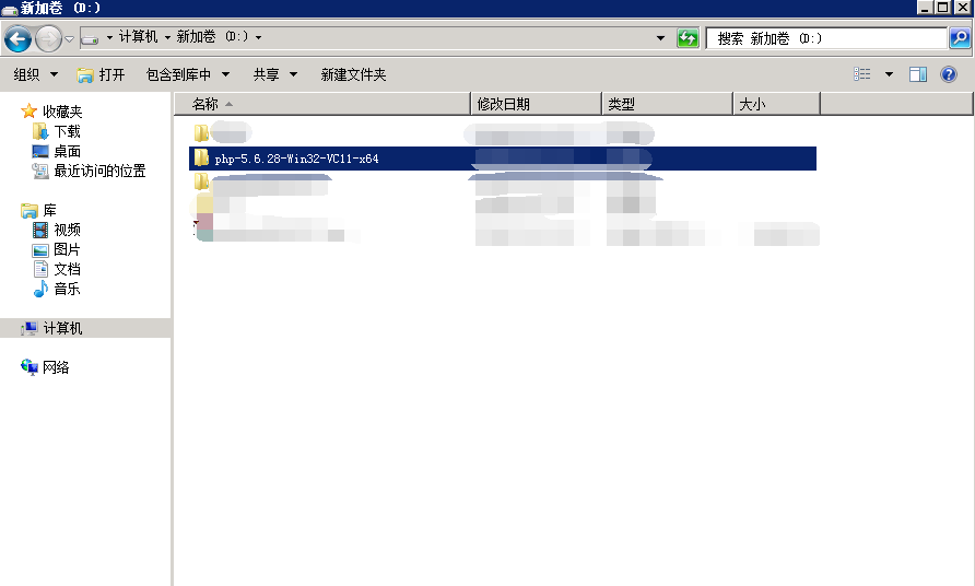 將php解壓縮,我這里將解壓縮后的文件放在了D盤下,如圖