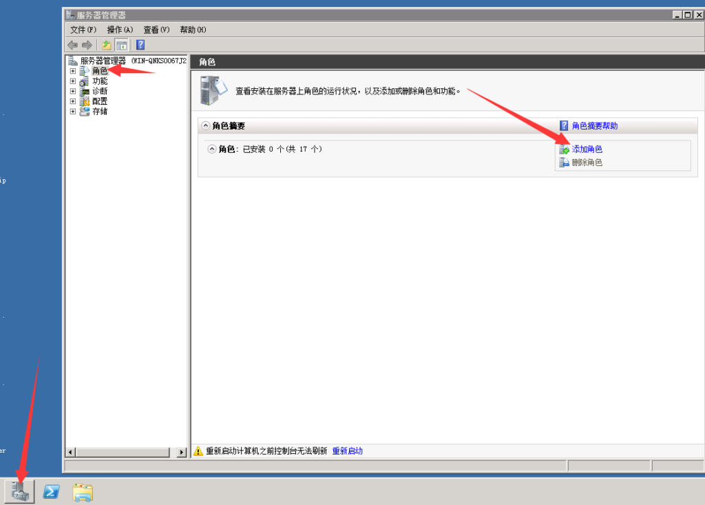 1、打開服務(wù)器管理器(開始-計算機-右鍵-管理-也可以打開),添加角色