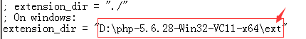 extension_dir = “你的PHP安裝程序安裝路徑ext文件夾”