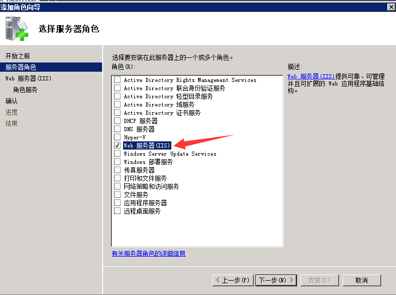 勾選Web服務(wù)器(IIS),下一步,有個注意事項繼續(xù)下一步(這里我就不截圖了)