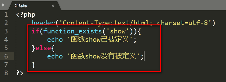 使用 function_exists() 函數判斷 show() 函數是否已經被定義,代碼如圖所示: