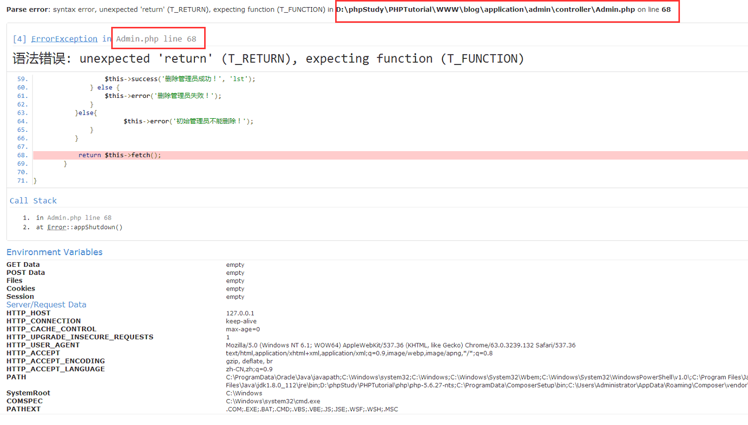 本文實(shí)例講述了TP5(thinkPHP5框架)實(shí)現(xiàn)顯示錯(cuò)誤信息及行號(hào)功能的方法。分享給大家供大家參考,具體如下: