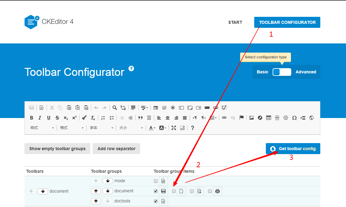 根據(jù)你的需求選擇自定義工具欄,選好之后點(diǎn)擊Get toolbar config,把這個(gè)配置代碼復(fù)制,備用