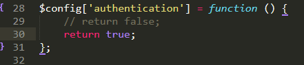 修改ckfinder文件夾下config.php,將29行的return false;改為return true;