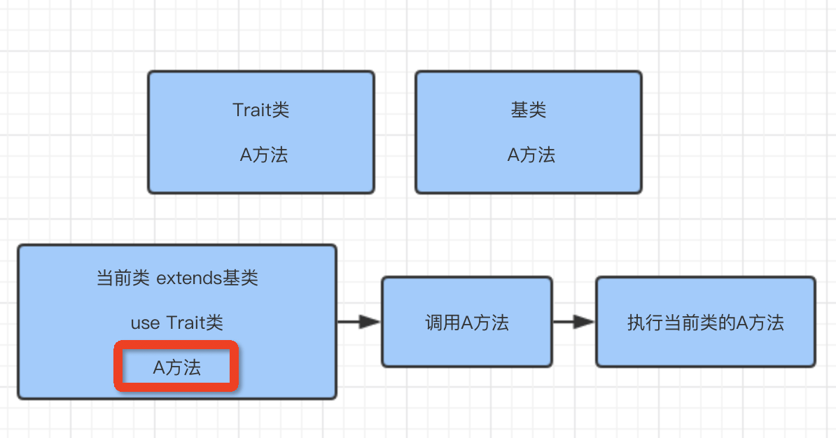 Trait類與當(dāng)前使用類、繼承的基類之間的調(diào)用優(yōu)先級順序如下: