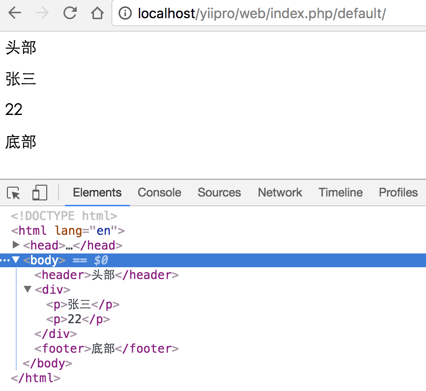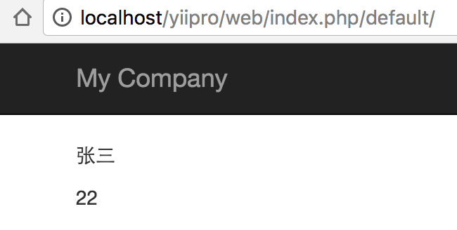 return $this->render('index',['username'=>'張三','age'=>22]);