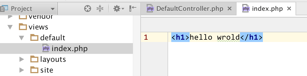 我們要在Default控制器里使用這個(gè)布局,寫(xiě)上: