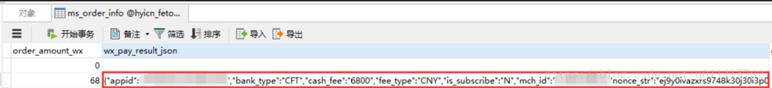json 字符串形式 $wx_pay_result_json = json_encode($result);, 然后存儲(chǔ)在訂單表中,比如: