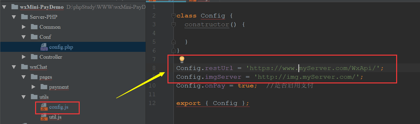 - 這里進(jìn)行配置的代碼,都在附錄源碼包的 wxMini-PayDemo\wxChat 目錄下