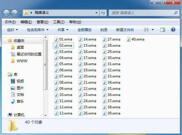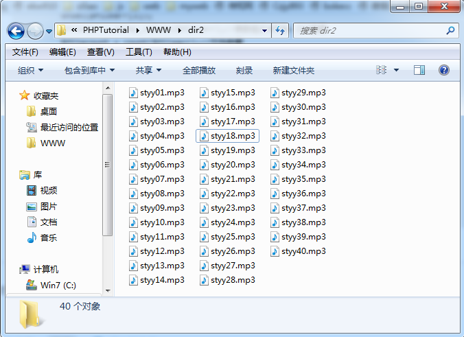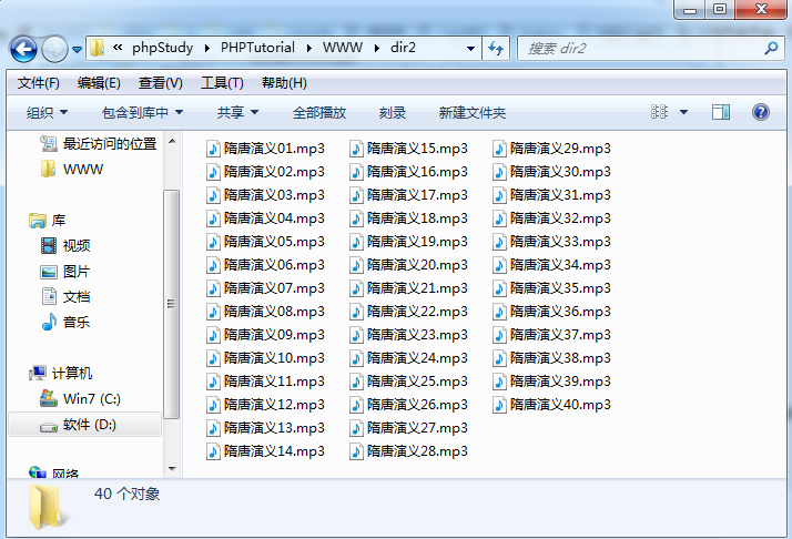 文件夾內(nèi)容如下,現(xiàn)在使用php讀取這個文件夾里面的文件,并批量重命名為"隋唐演義+序號.mp3"的格式: