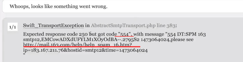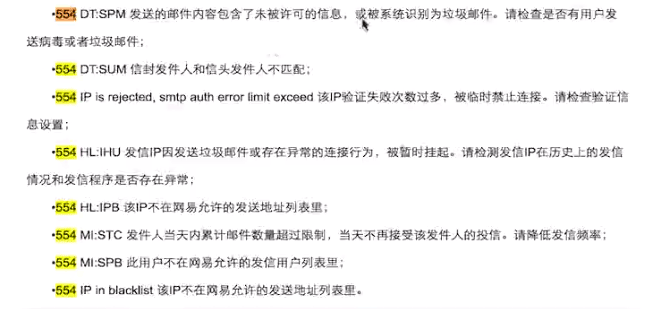 - 有時(shí)郵件發(fā)送時(shí),會(huì)有如下報(bào)錯(cuò),例如 554 多表示郵件發(fā)送過多被系統(tǒng)禁止了,具體信息可通過提示信息中的網(wǎng)址進(jìn)行查詢.