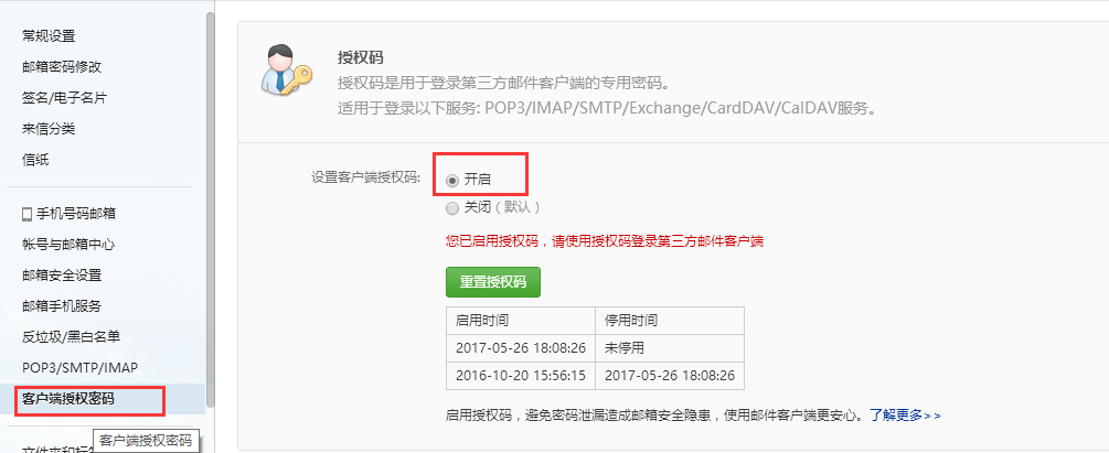 - 然后點(diǎn)擊“客戶端授權(quán)密碼”進(jìn)行權(quán)限設(shè)置,一般會(huì)進(jìn)行短信的驗(yàn)證,并記錄下自己設(shè)定的授權(quán)登錄密碼,后面的代碼中需要用到。