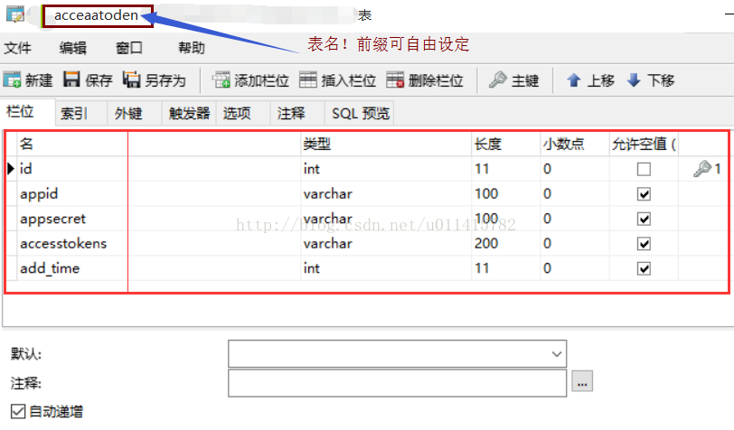 ④. 此表是用來微信授權(quán)時(shí)自動存儲公眾號信息及其token 獲取時(shí)間