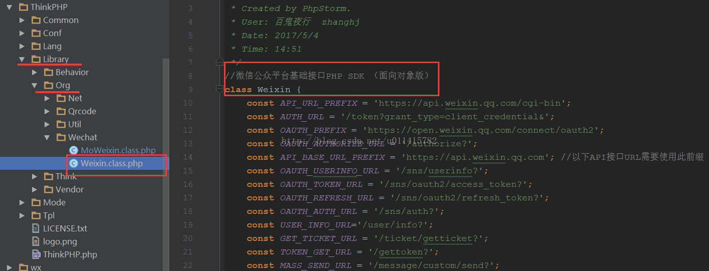 ②. 將文件 Weixin.class.php 放在對應(yīng)的 library 目錄中