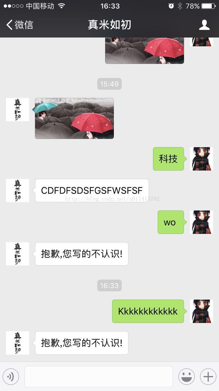 根據(jù)用戶的輸入進(jìn)行消息的自動回復(fù),代碼實(shí)際開發(fā)中可根據(jù)獲得的文字進(jìn)行項(xiàng)目數(shù)據(jù)庫中的文字匹配,此處簡單演示即可。