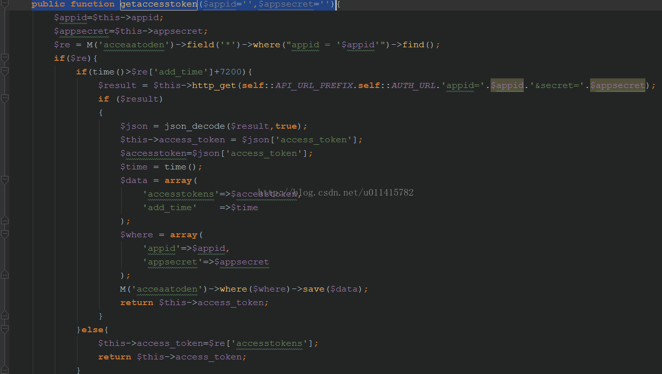 而對應(yīng)操作此表的代碼位于 Weixin.class 中的 getaccesstoken()方法,
