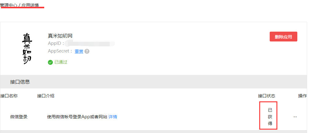 當(dāng)應(yīng)用創(chuàng)建通過后,必須還要滿足接口權(quán)限的獲取,會有工作人員主動聯(lián)系,一般一天就能完成