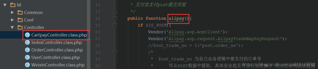 在請求喚醒支付寶支付的路徑中進(jìn)行接口代碼的編輯