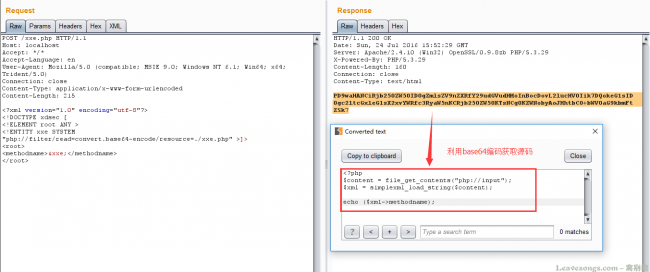 如下,我們使用的是php://filter/read=convert.base64-encode/resource=./xxe.php