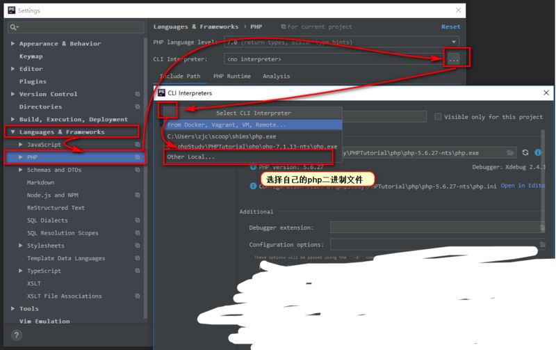設(shè)置本地的php解釋器,即php的二進(jìn)制文件,windows下的php安裝路徑下的php.exe,類unix系統(tǒng)就是bin/php文件