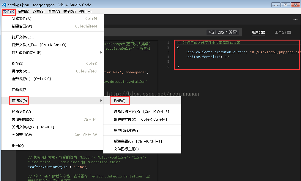彈出下面窗口,然后將 "php.validate.executablePath": "D:/usr/local/php.exe" 添加進(jìn)去