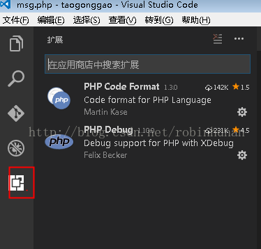 具體為:按ctl+shif+x 或者點 紅色的“擴展標(biāo)簽“ , 輸入xdebug即可安裝