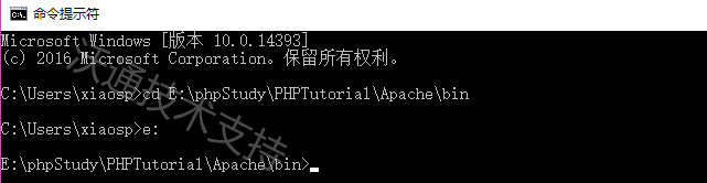在服務(wù)器上打開dos命令行(cmd),通過cd命令進(jìn)入apache的bin目錄,如E:phpStudyPHPTutorialApachebin,輸入httpd -t命令,查看配置是否正常,具體如下圖: