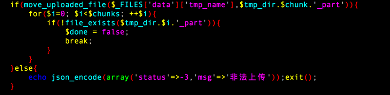 (3)變量$done初始為true,用來判斷是否所有的分片都上傳完成,每個分片保存的時候使用分片序號作為文件名,然后判斷所有的分片文件是否存在