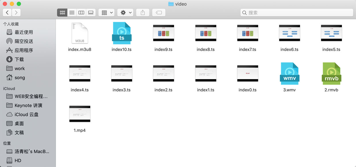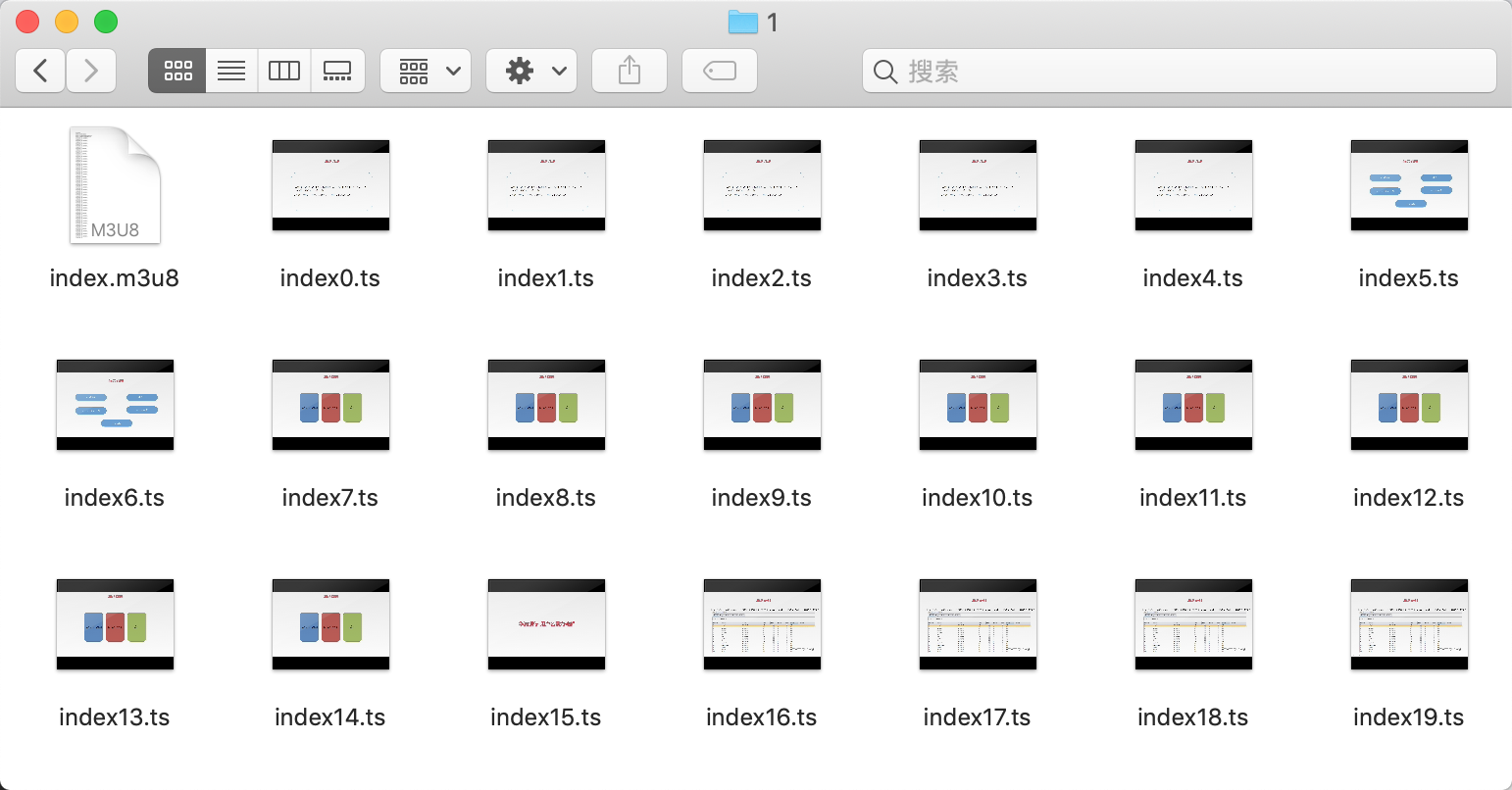 從上面的返回結(jié)果當(dāng)中可以看出當(dāng)前正有一個(gè)任務(wù)處于運(yùn)行狀態(tài),此時(shí)打開視頻輸出目錄,會(huì)看到有多個(gè)ts格式的視頻文件,這些文件是剛在通過PHP自動(dòng)執(zhí)行所產(chǎn)生的,如下圖所示