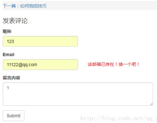 input type="name" id="nickname" name="nickname" class="form-control" id="exampleInputname1" placeholder="用于評(píng)論昵稱">